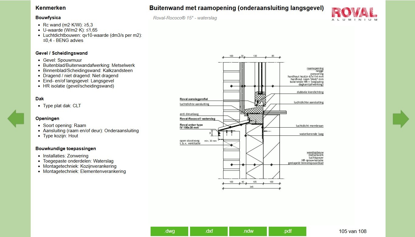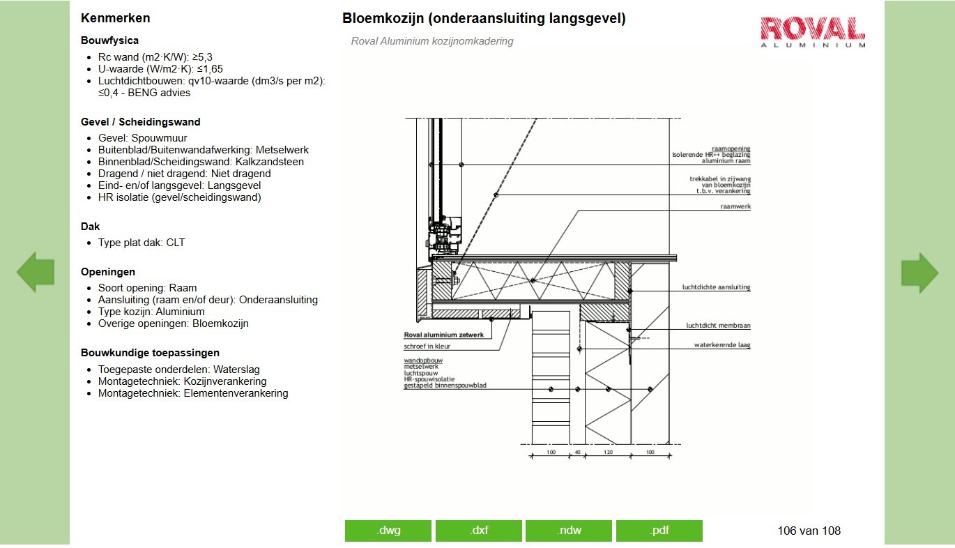 De bouwtechnische details (via website Archidat BouwFormatie) zijn onderverdeeld in: