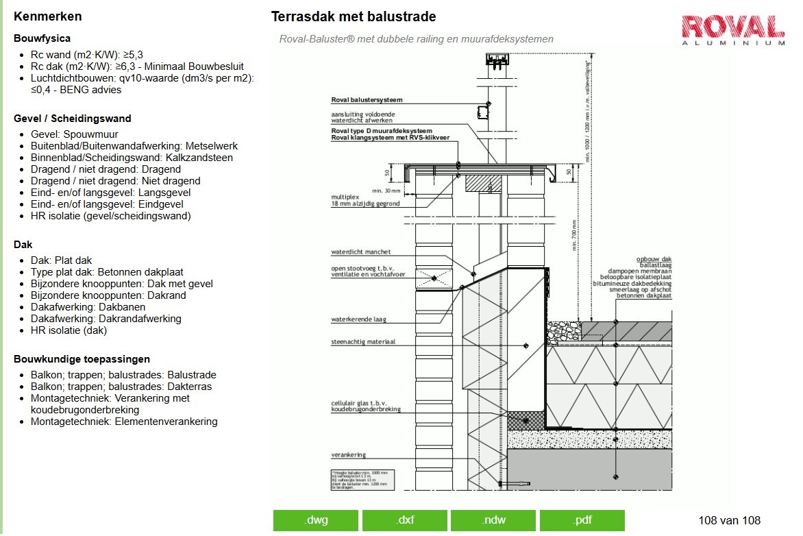 Bestekteksten van de Roval Aluminium producten zijn in de rubriek PRODUCTEN op de Roval website terug te vinden. Tevens zijn ze opgenomen in de gratis online bestekservice van TotaalDakConcept. Hier vindt u diverse complete platdakconcepten, zoals een PV Panelen Dak, een Zonreflectiedak, Groendak, Waterretentiedak en Traditioneel Dak.