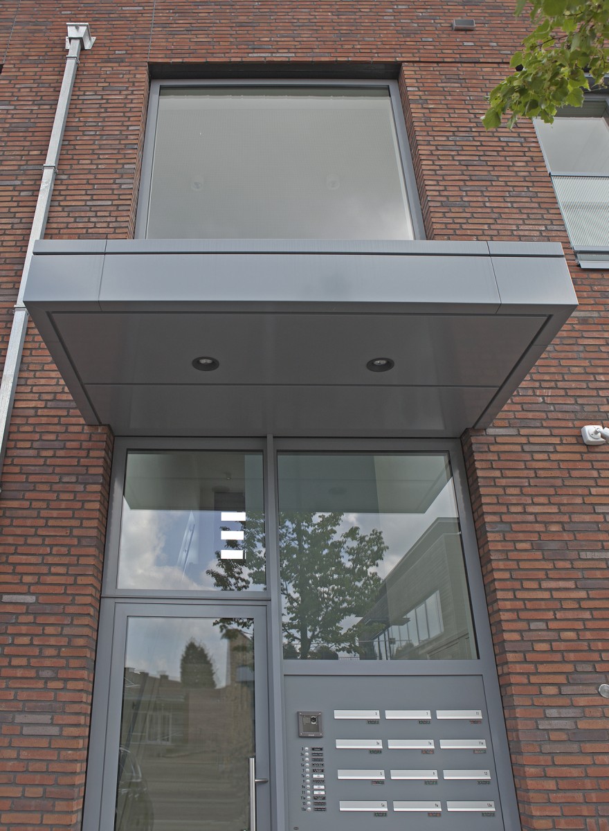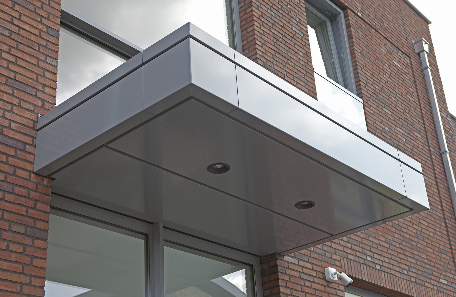 Met aluminium luifelbekleding kiest Roval voor een oplossing die uitstraling en duurzaamheid moeiteloos combineert. Aluminium is licht, sterk en onderhoudsarm, en blijft ook op de lange termijn mooi. Dankzij maatwerk en een ruime keuze in kleuren en afwerkingen sluit de luifelbekleding altijd aan op het ontwerp van het gebouw.