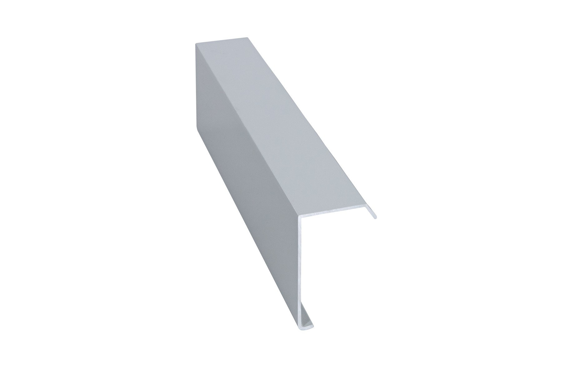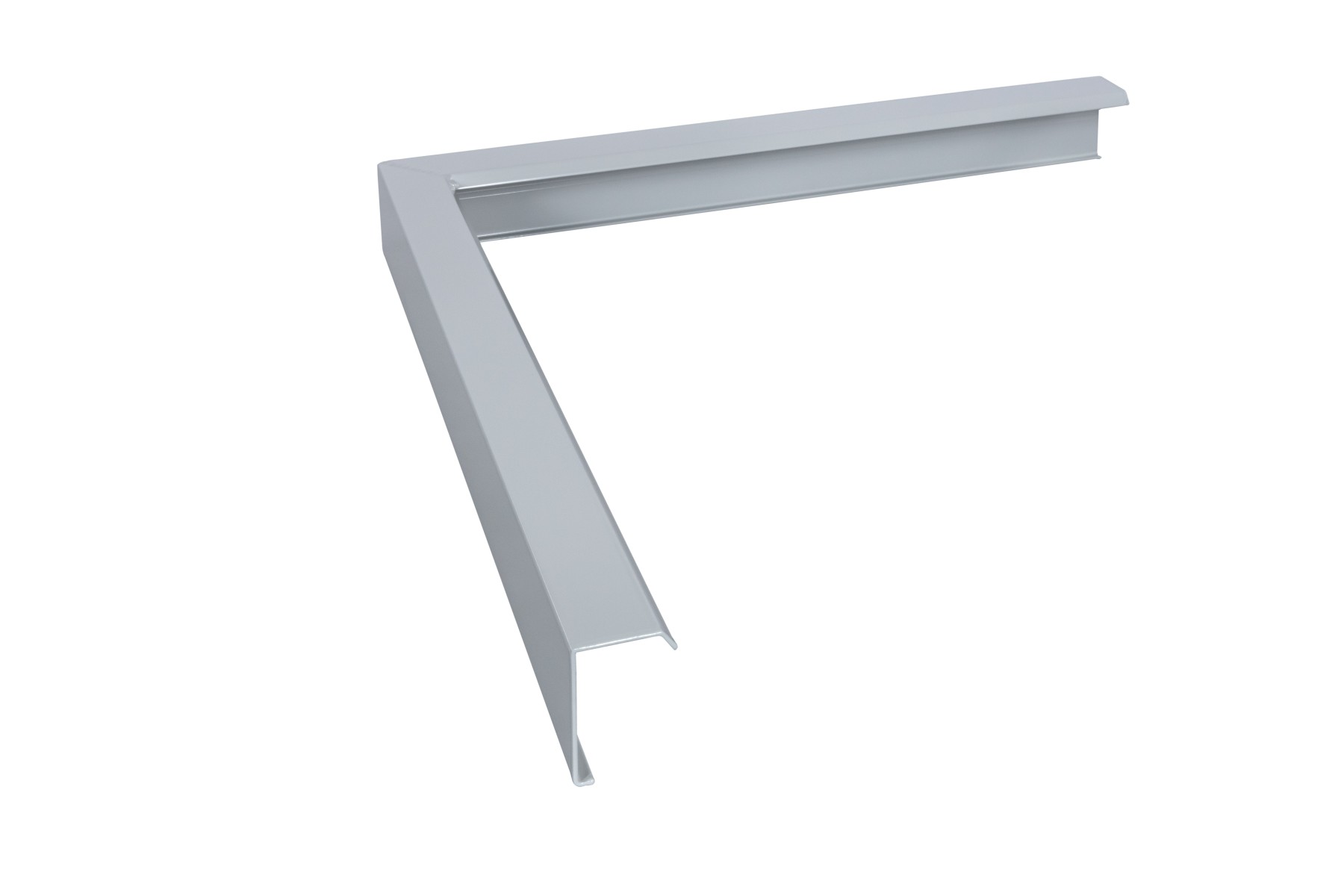 De oplegrand heeft een lengte van 54 mm en is standaard voorzien van bevestigings(slob)gaten. Tevens leveren wij verbindingsplaatjes en 90° gelaste binnen- en buitenhoeken. Van het onderprofiel zijn de binnen- en buitenhoeken standaard 250 x 250 mm. De hoeken van het afwerkingsprofiel zijn standaard 500 x 500 mm. Het onderprofiel is brute. De afwerkingsprofielen, de hoekprofielen en de verbindingsplaatjes kunnen in brute, geanodiseerd of in elke gewenste RAL-kleur worden uitgevoerd.