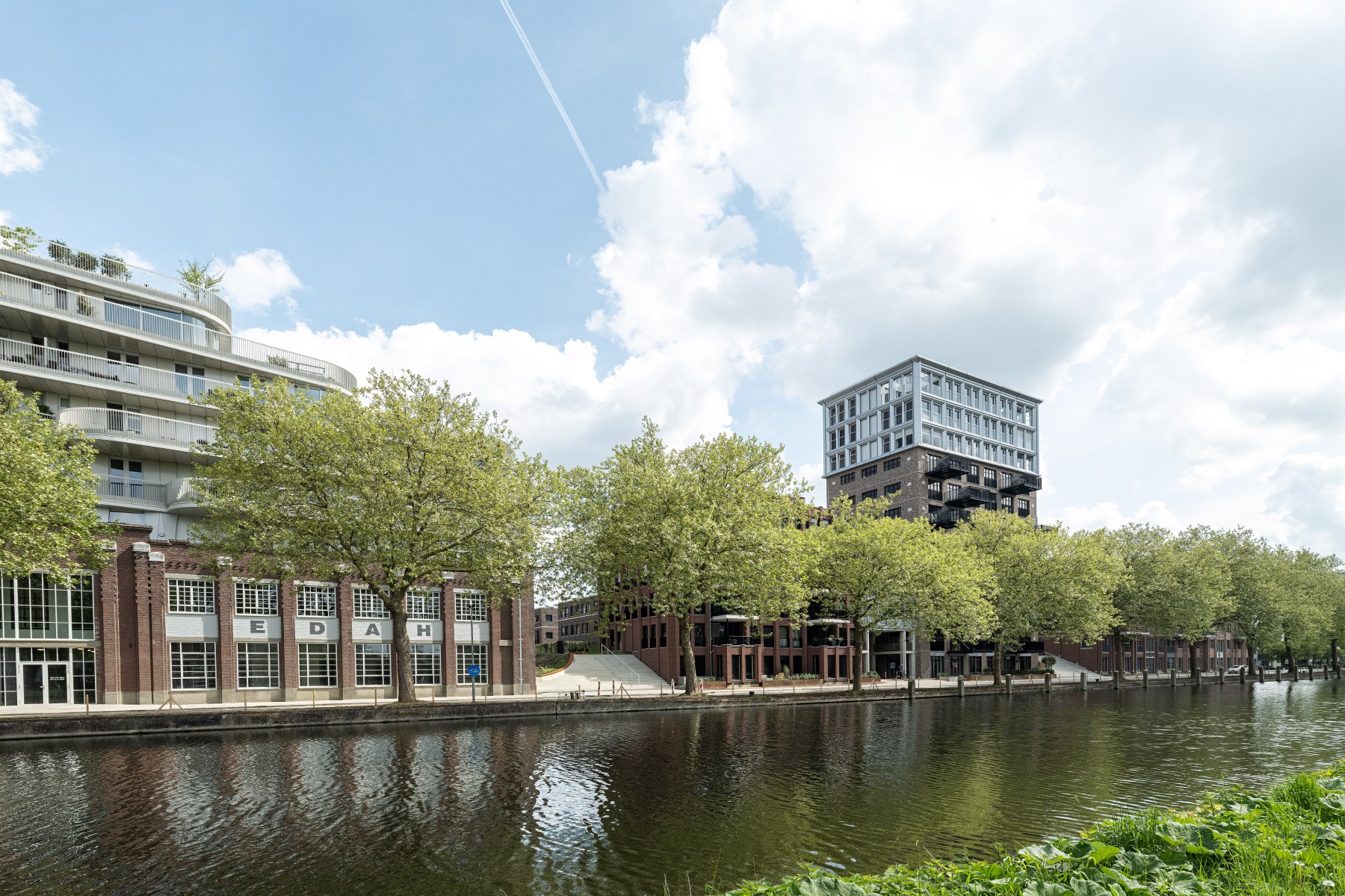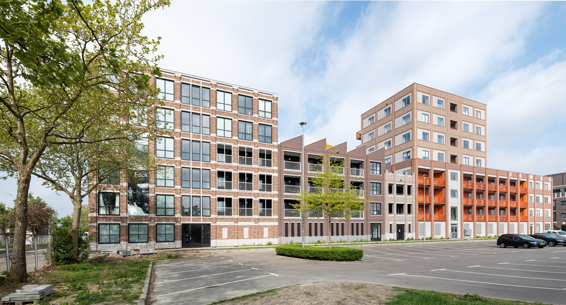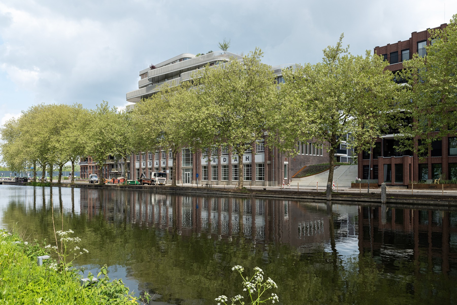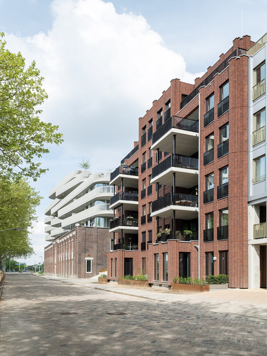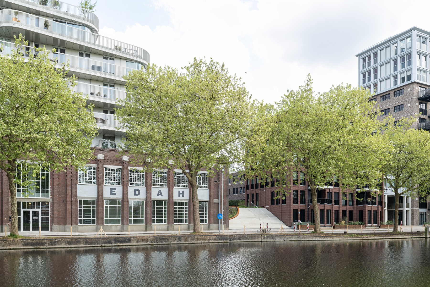 Het wooncomplex bestaat uit dertien woonblokken die samen een heldere eenheid vormen, maar toch elk een eigen karakter bezitten. “We hebben gestreefd naar variatie binnen samenhang”, merkt Verbeek op. “De breedte maatvoering van de woongebouwen aan het kanaal is nagenoeg gelijk, geïnspireerd op de breedte van het monumentale EDAH-gebouw. Dat zorgt voor ritme en herkenbaarheid.”