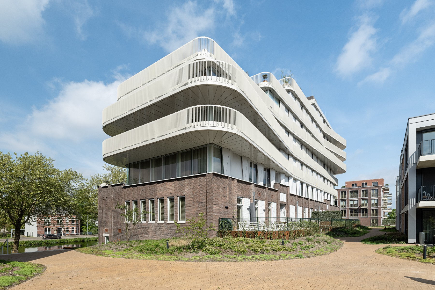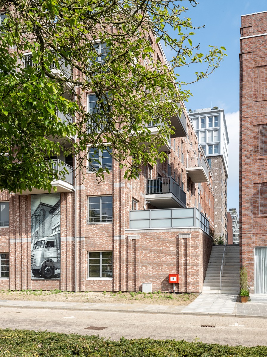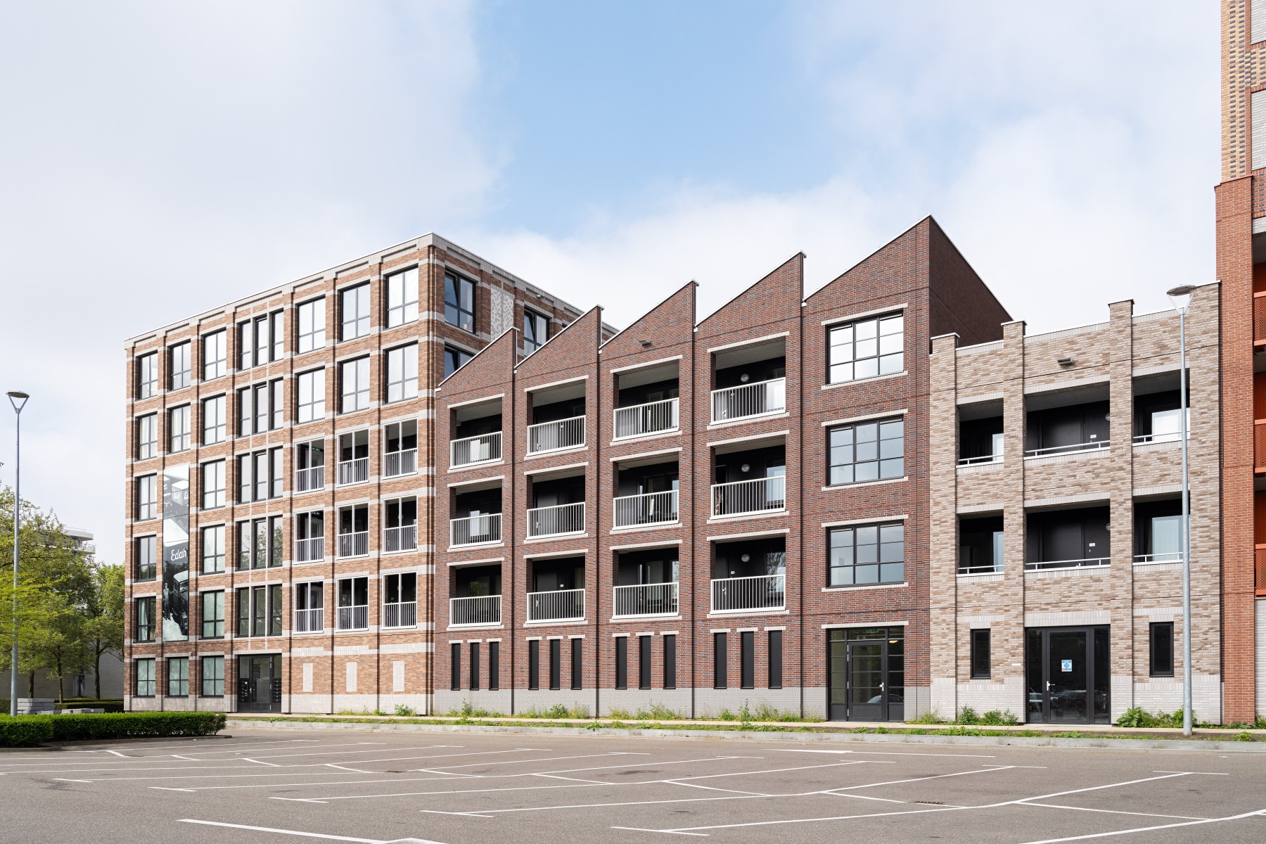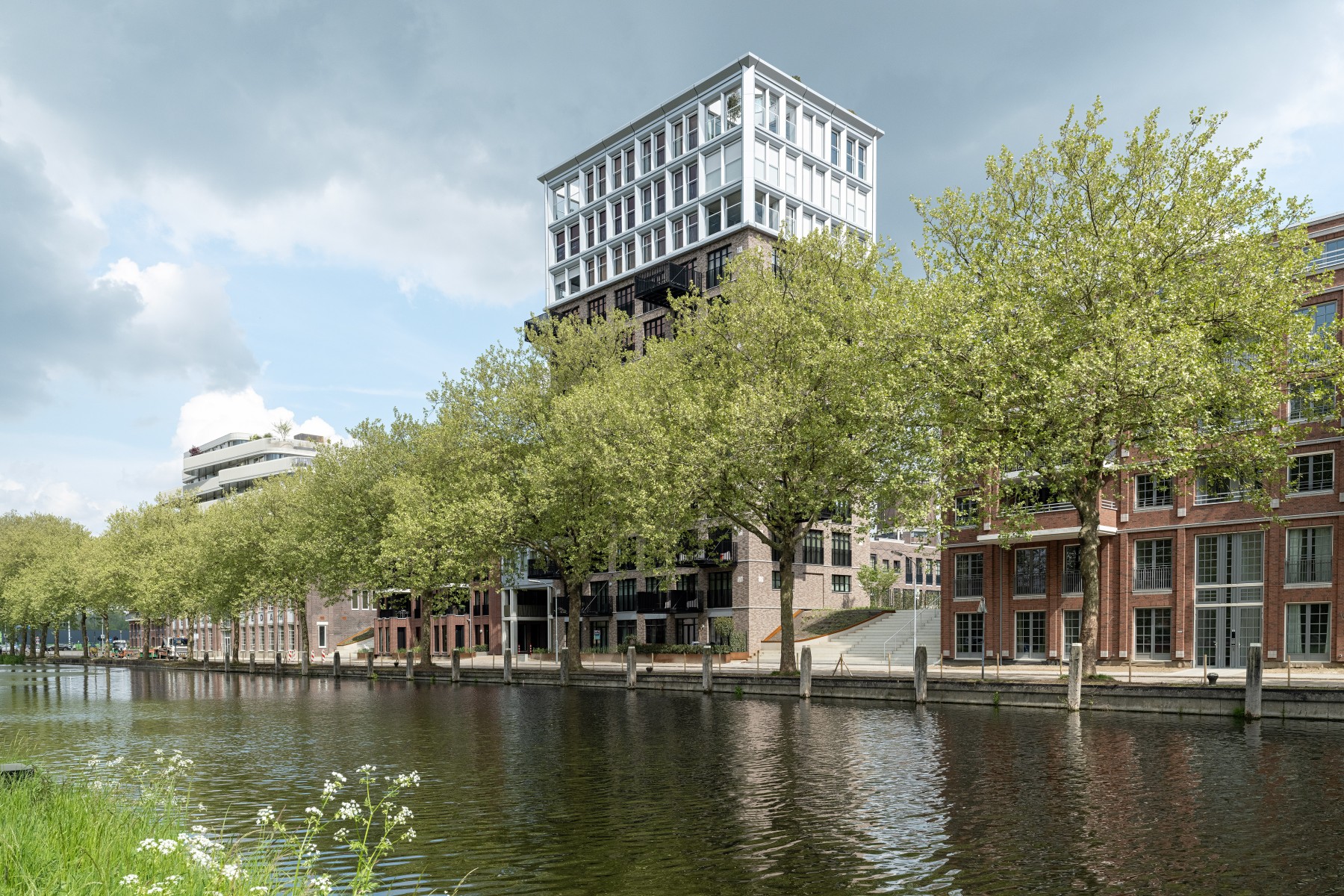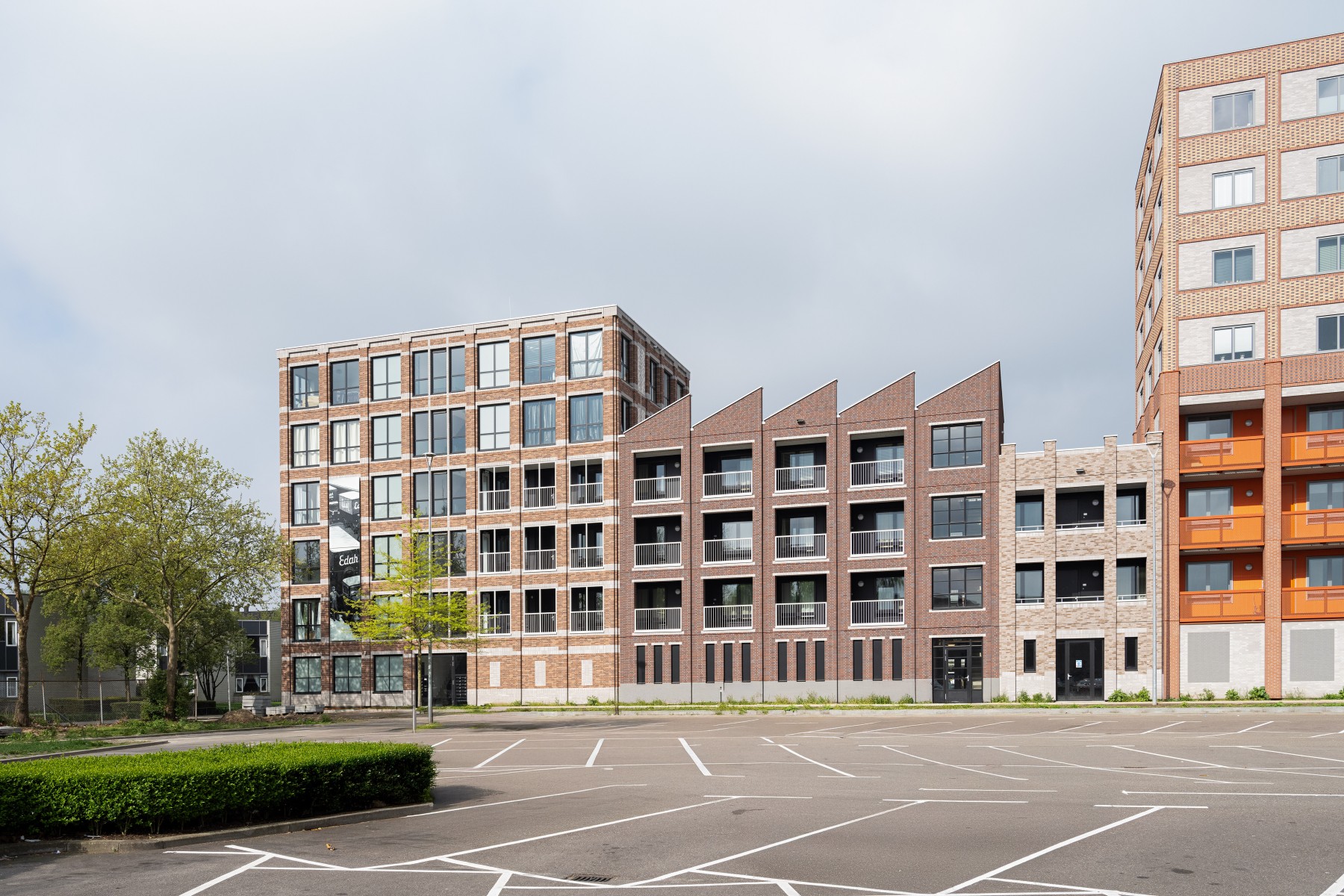 Het wooncomplex bestaat uit dertien woonblokken die samen een heldere eenheid vormen, maar toch elk een eigen karakter bezitten. “We hebben gestreefd naar variatie binnen samenhang”, merkt Verbeek op. “De breedte maatvoering van de woongebouwen aan het kanaal is nagenoeg gelijk, geïnspireerd op de breedte van het monumentale EDAH-gebouw. Dat zorgt voor ritme en herkenbaarheid.”