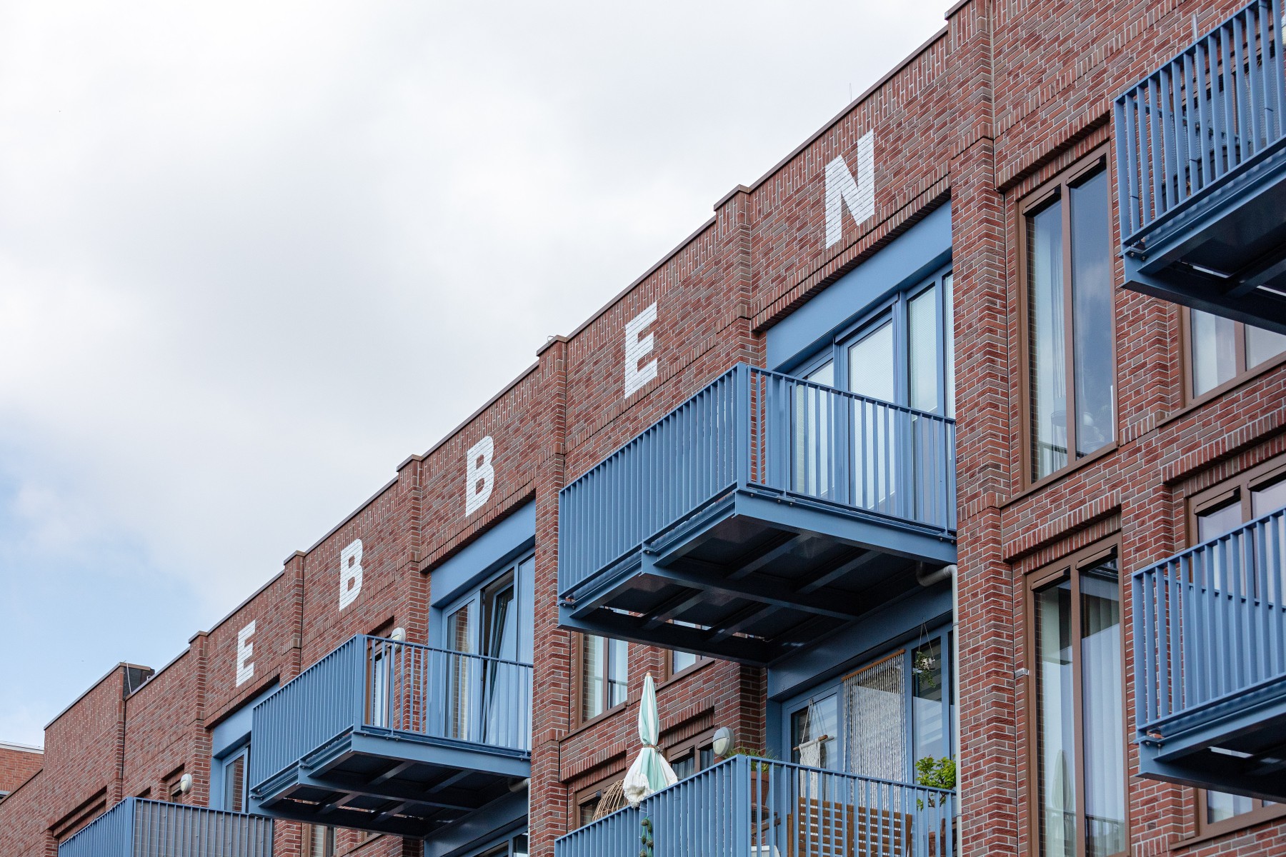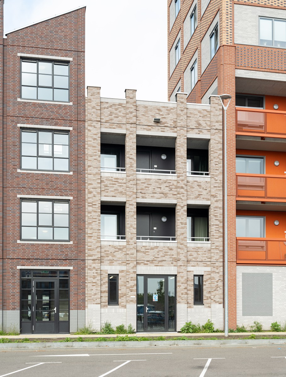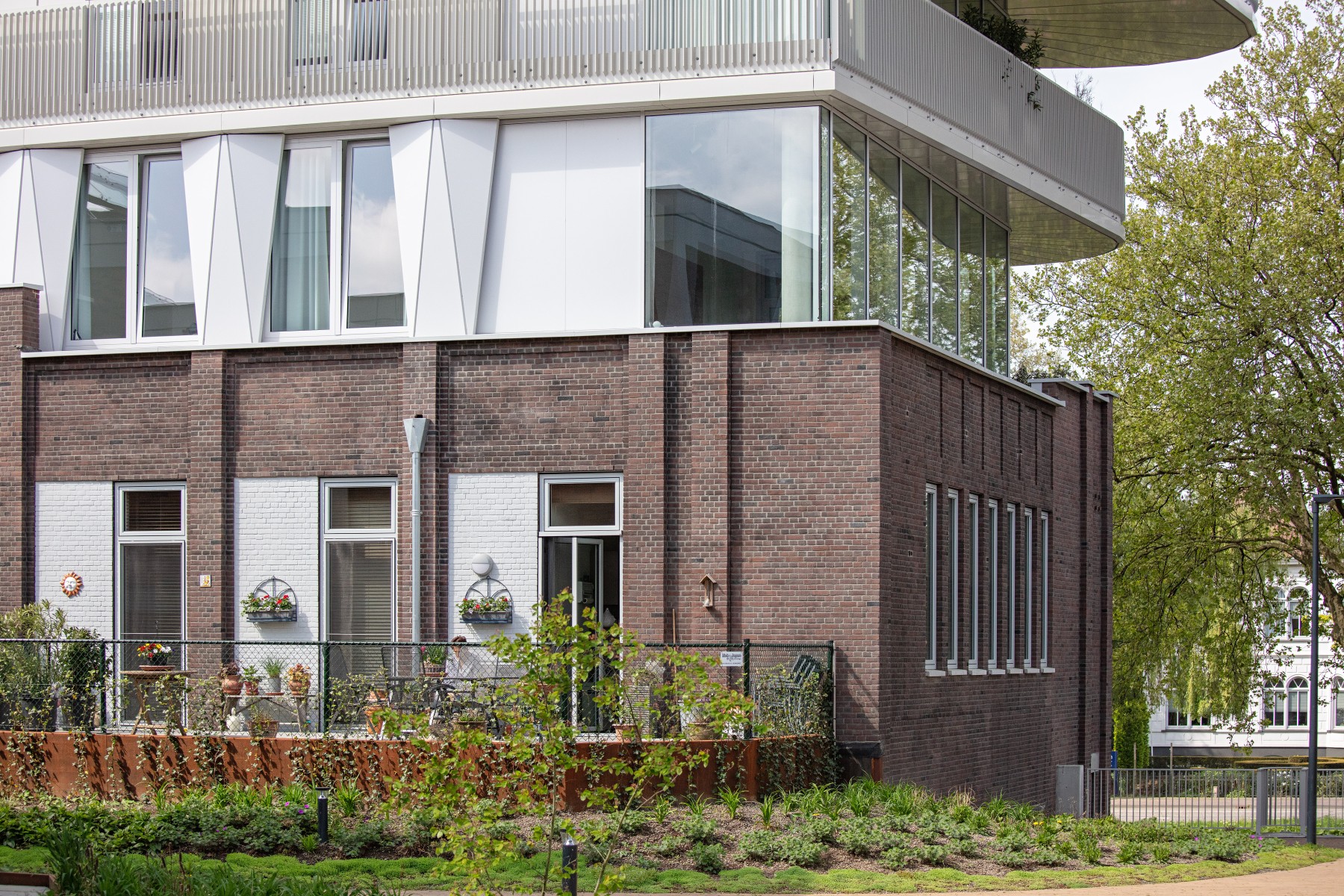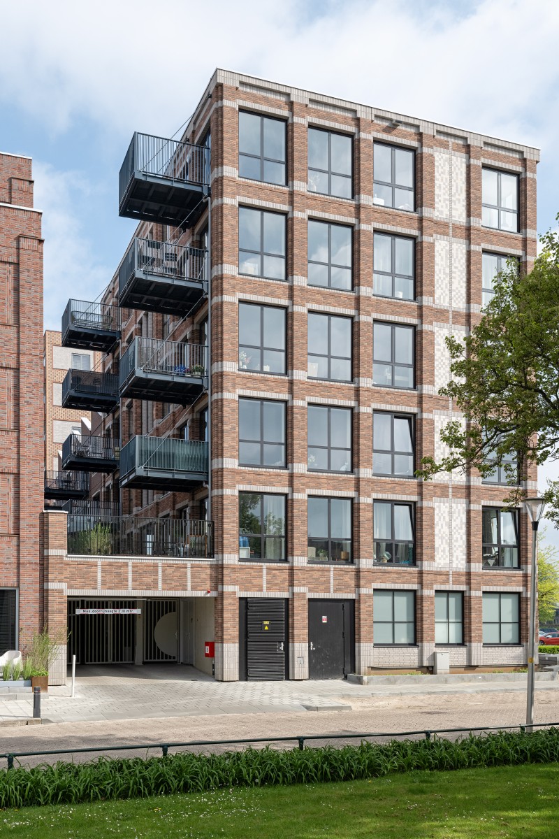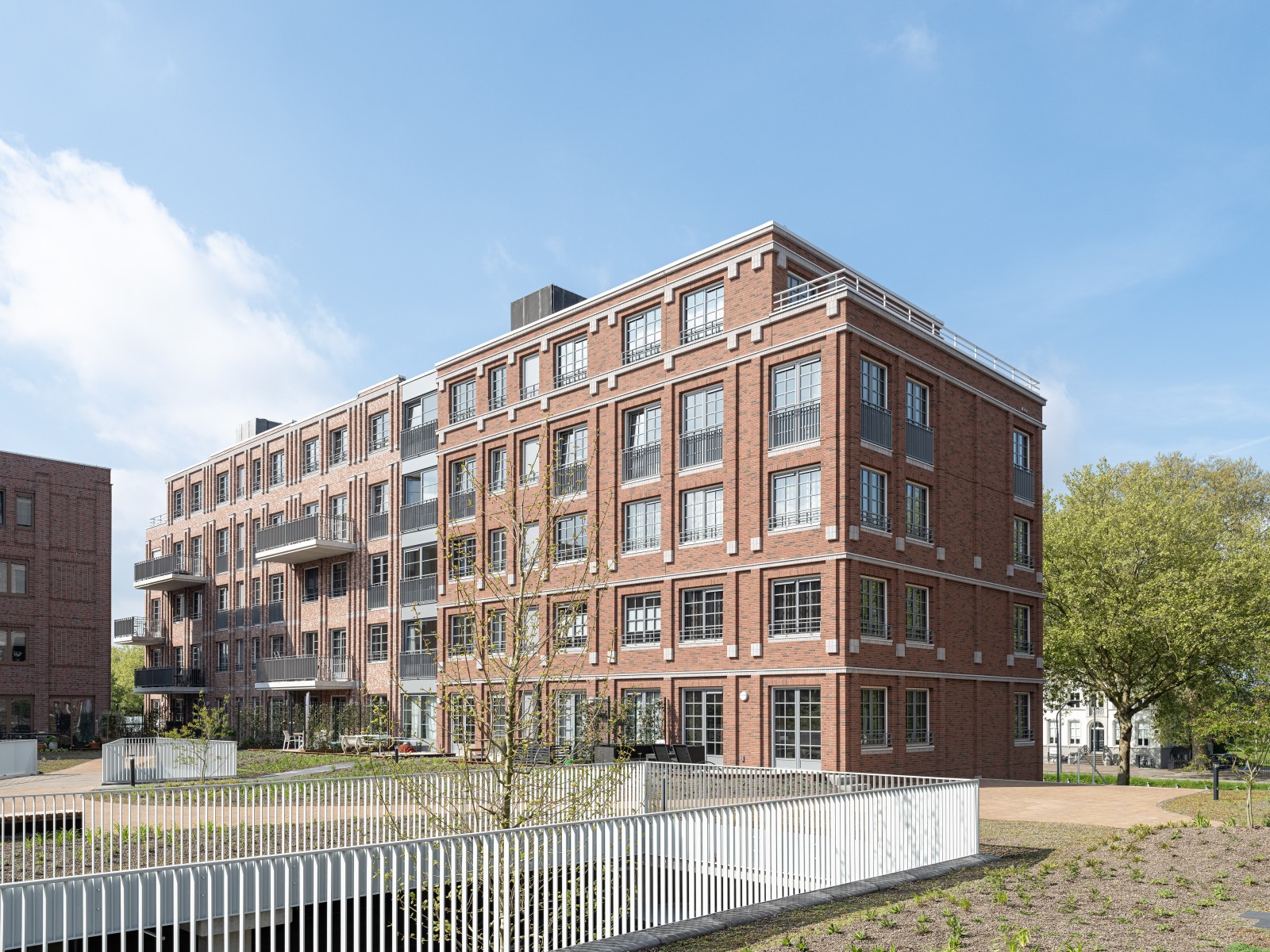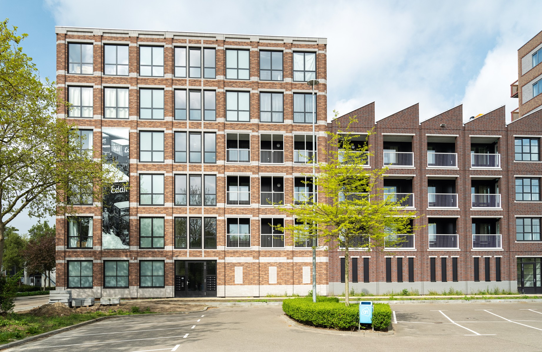Het wooncomplex bestaat uit dertien woonblokken die samen een heldere eenheid vormen, maar toch elk een eigen karakter bezitten. “We hebben gestreefd naar variatie binnen samenhang”, merkt Verbeek op. “De breedte maatvoering van de woongebouwen aan het kanaal is nagenoeg gelijk, geïnspireerd op de breedte van het monumentale EDAH-gebouw. Dat zorgt voor ritme en herkenbaarheid.”