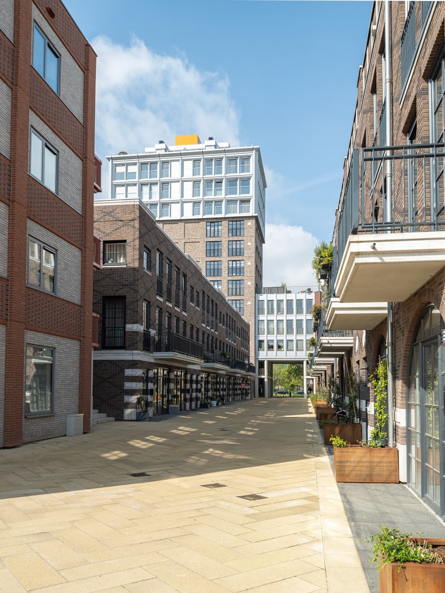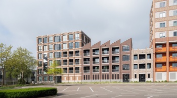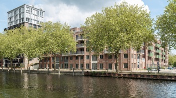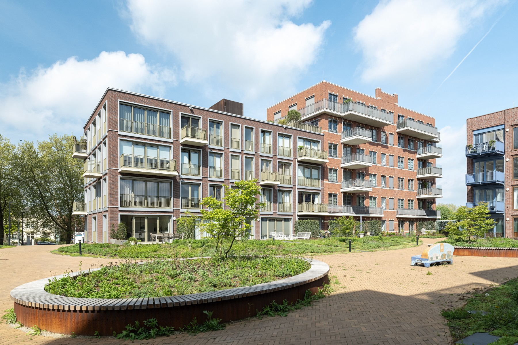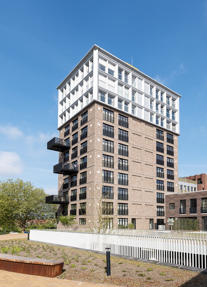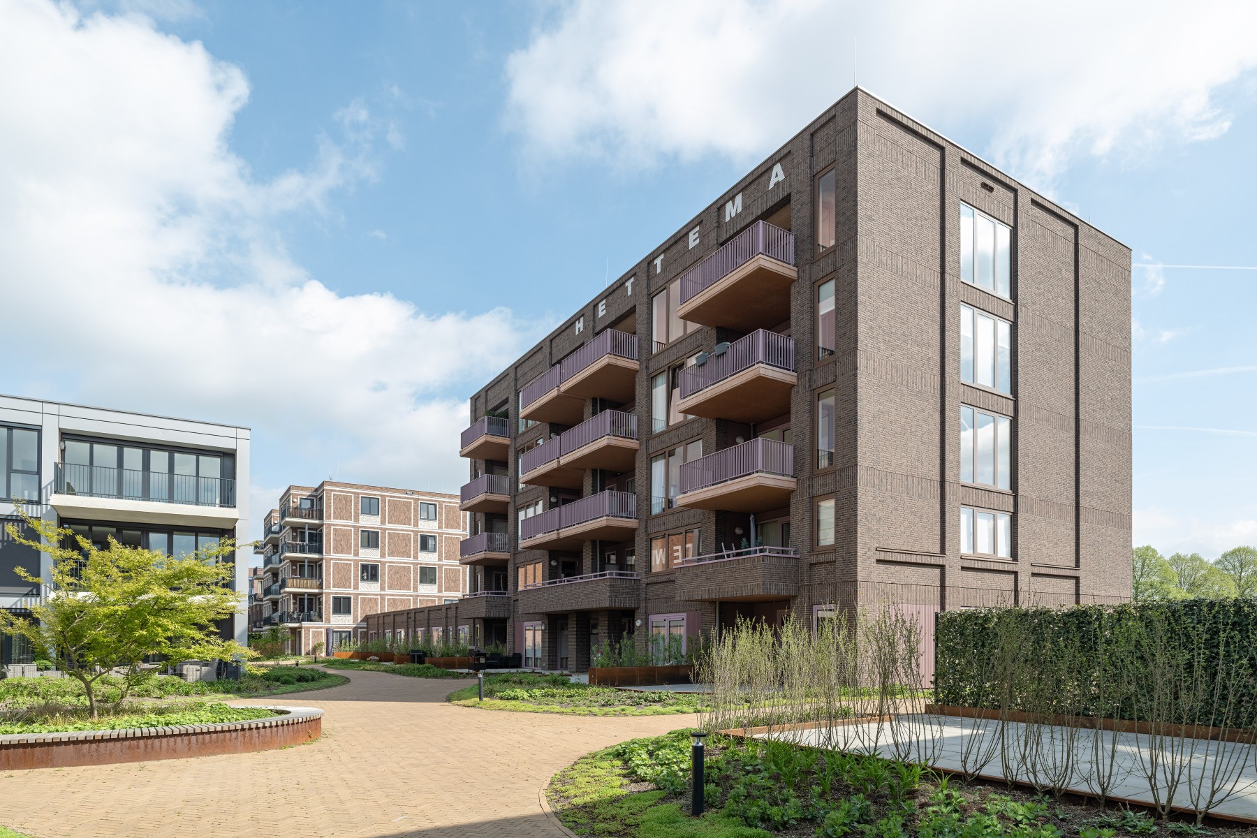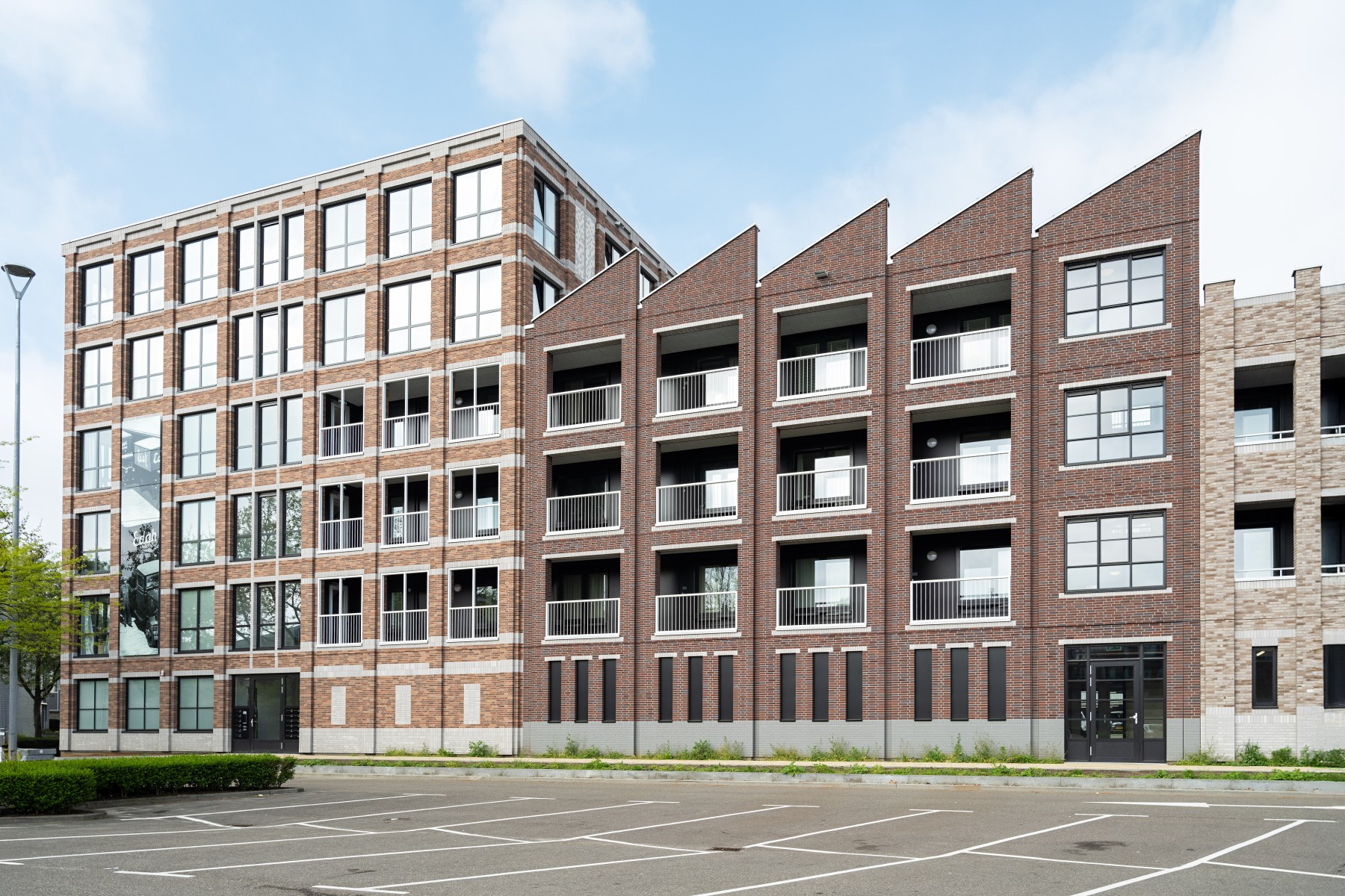Het wooncomplex bestaat uit dertien woonblokken die samen een heldere eenheid vormen, maar toch elk een eigen karakter bezitten. “We hebben gestreefd naar variatie binnen samenhang”, merkt Verbeek op. “De breedte maatvoering van de woongebouwen aan het kanaal is nagenoeg gelijk, geïnspireerd op de breedte van het monumentale EDAH-gebouw. Dat zorgt voor ritme en herkenbaarheid.”