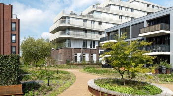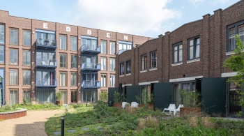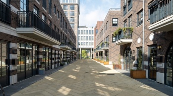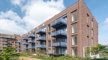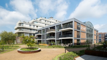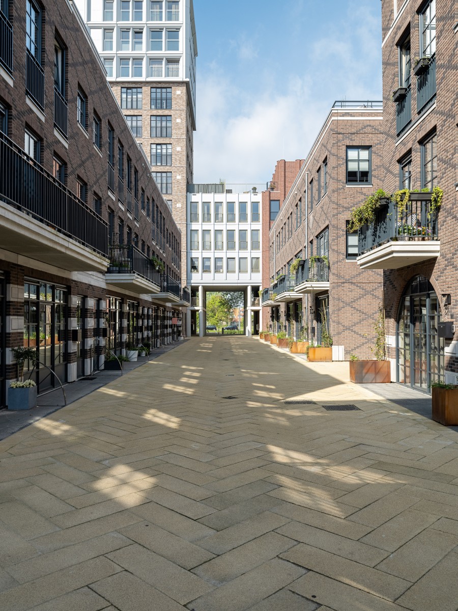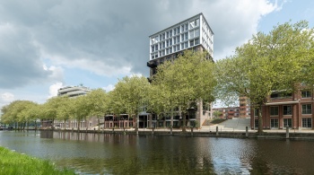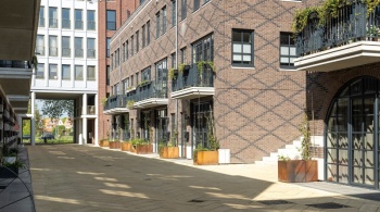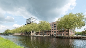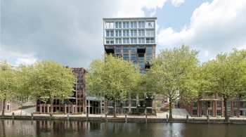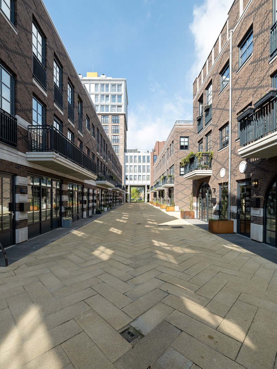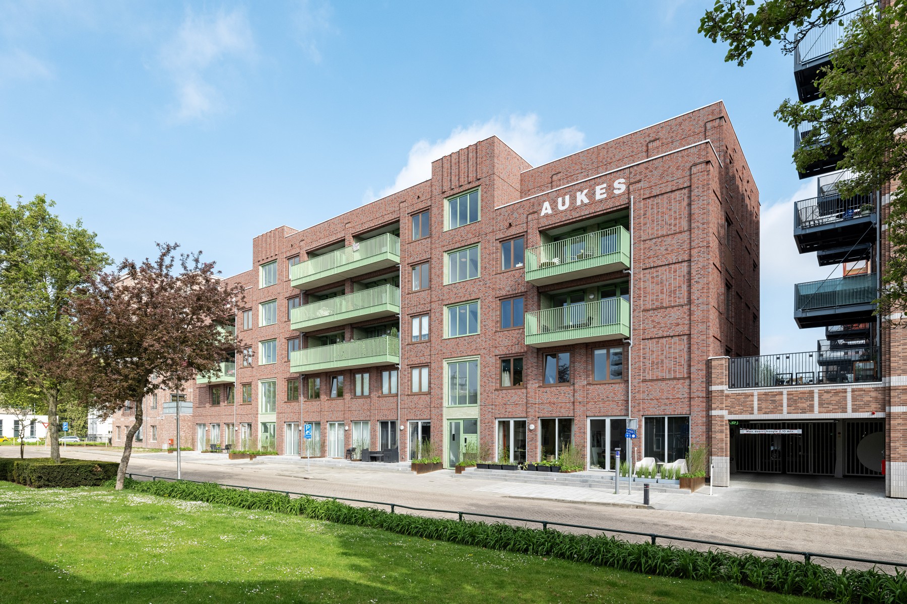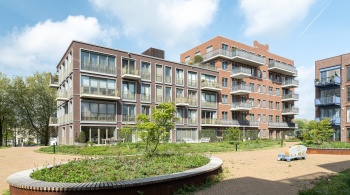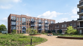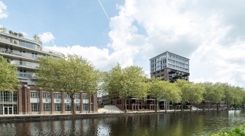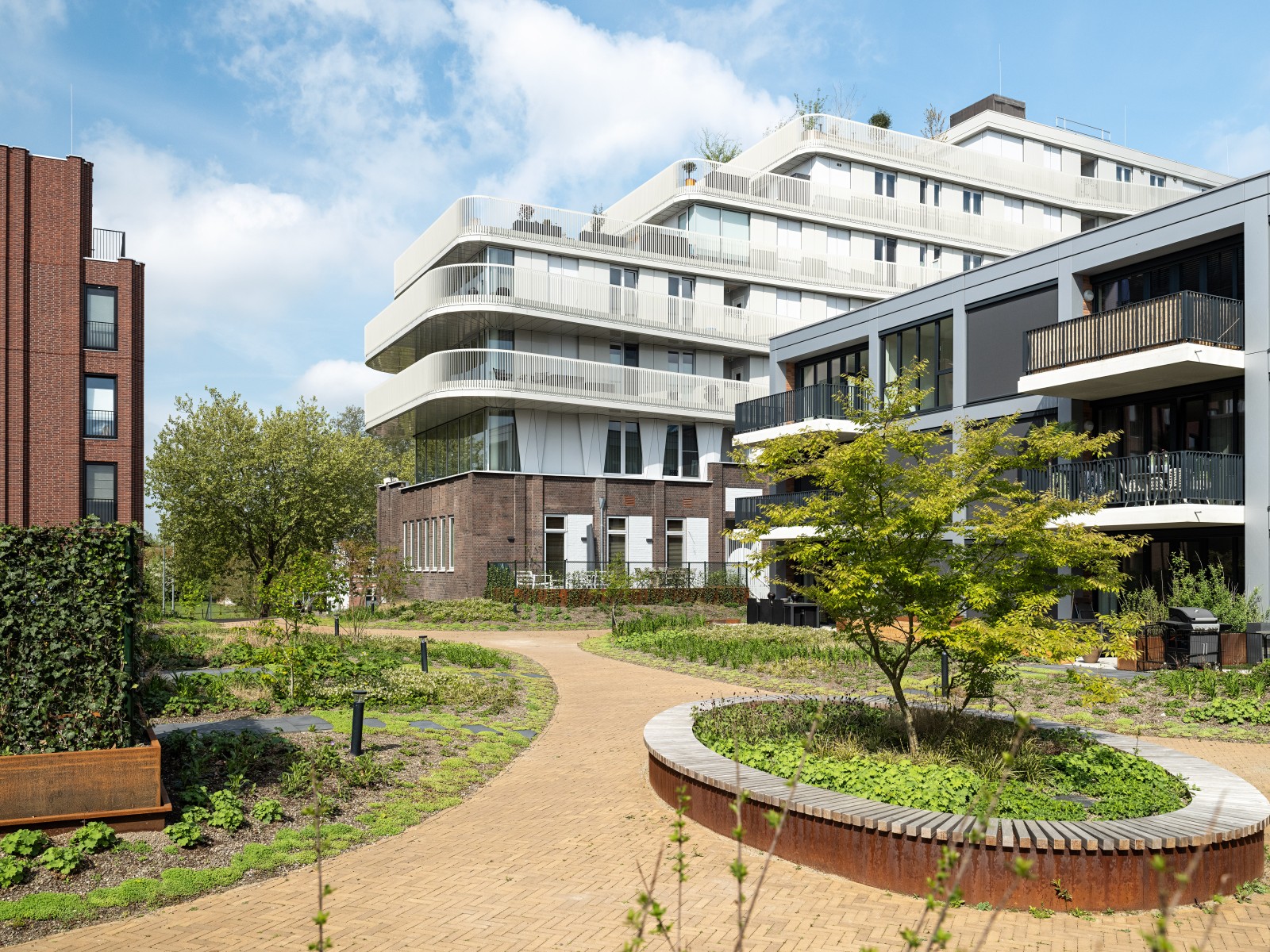 Het wooncomplex bestaat uit dertien woonblokken die samen een heldere eenheid vormen, maar toch elk een eigen karakter bezitten. “We hebben gestreefd naar variatie binnen samenhang”, merkt Verbeek op. “De breedte maatvoering van de woongebouwen aan het kanaal is nagenoeg gelijk, geïnspireerd op de breedte van het monumentale EDAH-gebouw. Dat zorgt voor ritme en herkenbaarheid.”