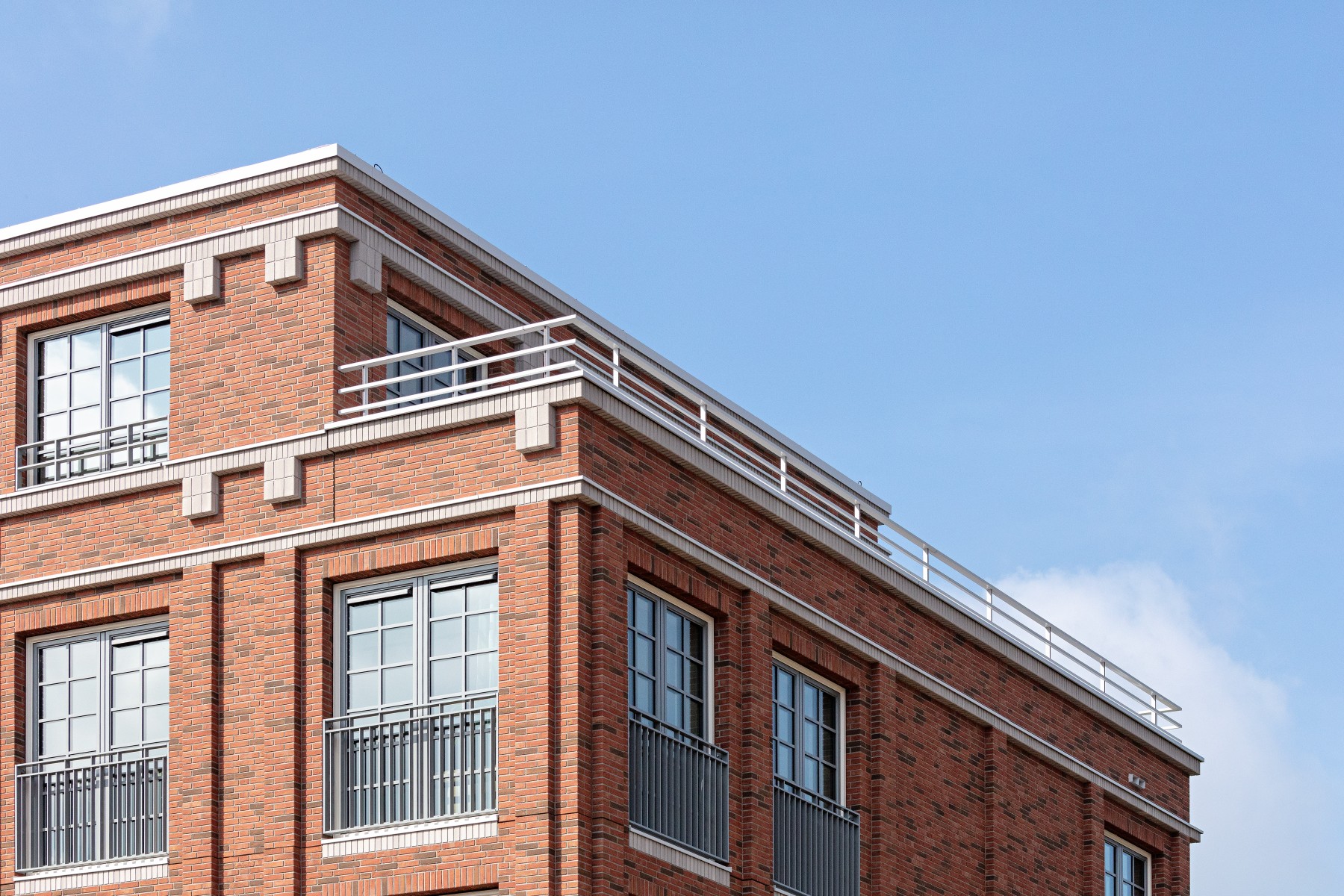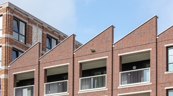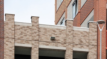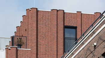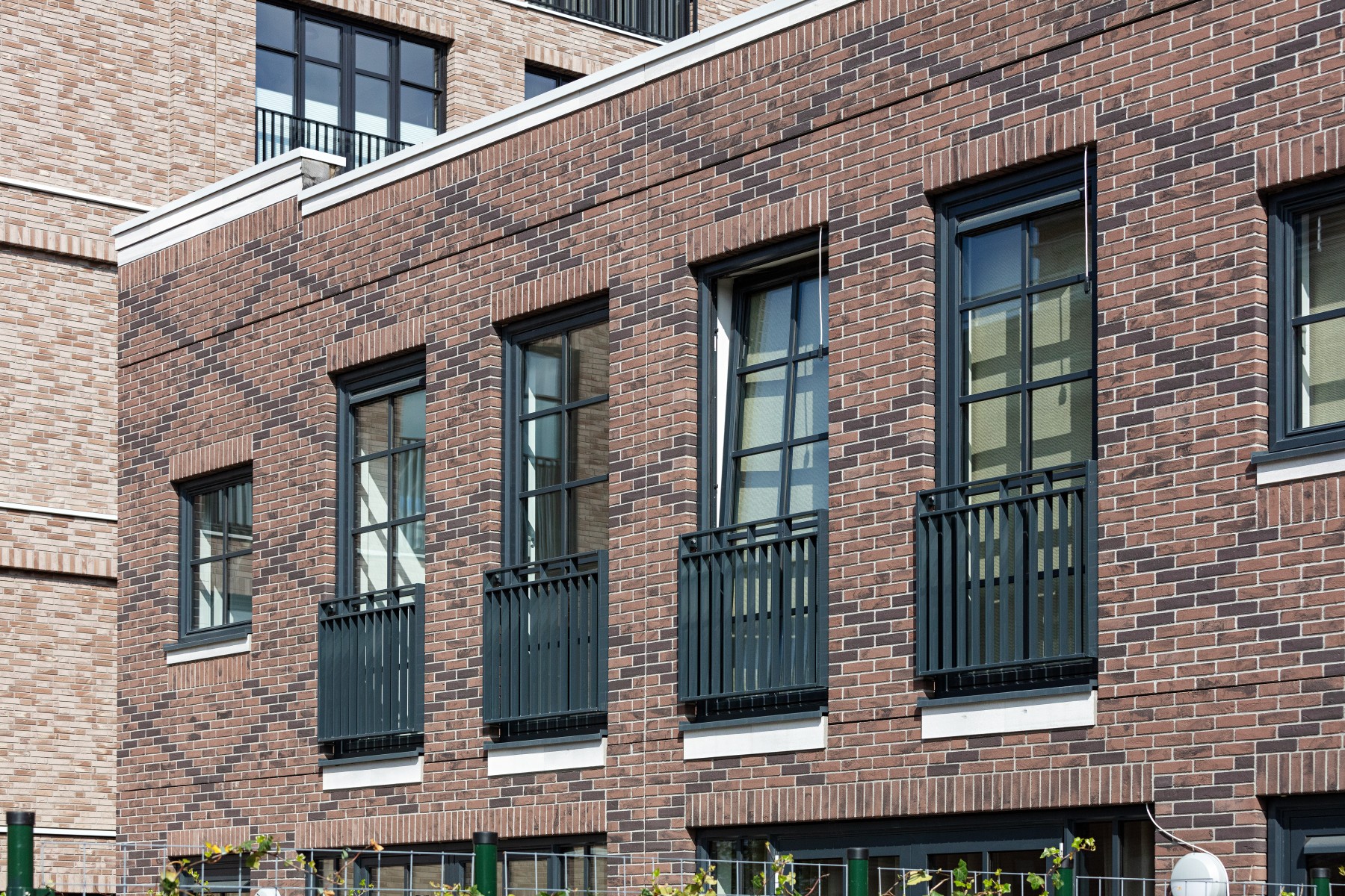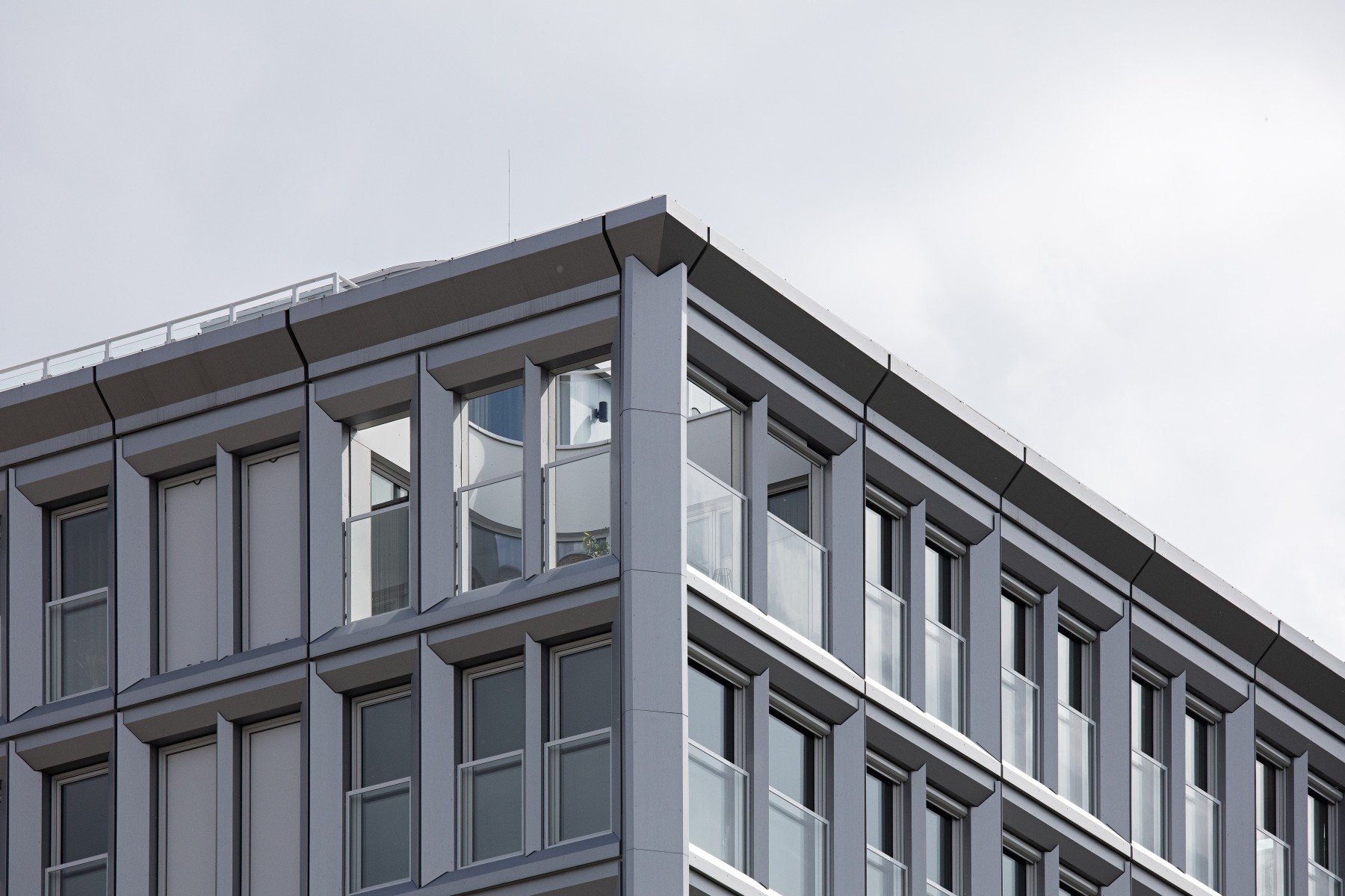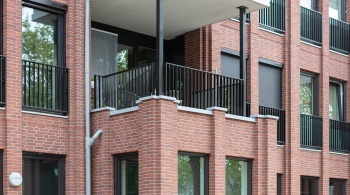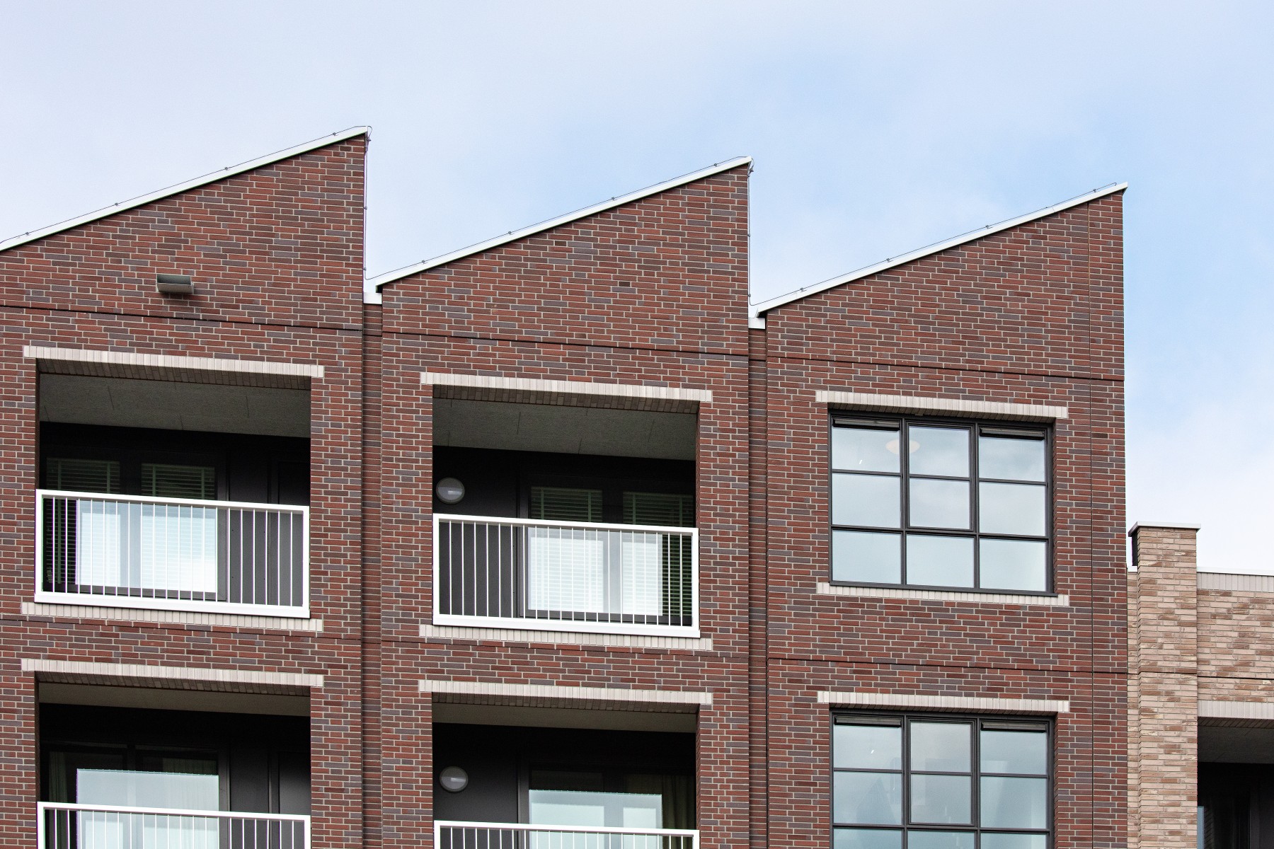 Voor de waterslagen en muurafdekkappen koos Joost bewust voor aluminium vanwege het gemak waarmee het materiaal gedetailleerd kan worden. De aluminium muurafdekkappen zijn op sommige locaties voorzien van balusters met railing, soms drie boven elkaar. “Aluminium muurafdekkappen zorgen voor een strakke afwerking bij randen waar bewoners dichtbij komen, zoals balkons en dakterrassen. Hier is aluminium niet alleen esthetisch aantrekkelijk, maar ook praktisch door zijn duurzaamheid en eenvoudig onderhoud. Bovendien konden we hiermee toch een beeld van traditionele betonarchitectuur op een lichte en innovatieve manier neerzetten, passend bij de houtskelet bouwmethodiek”, aldus Verbeek. Daarnaast heeft aluminium geholpen om horizontale naden tussen gevelpanelen te camoufleren. “Door slim aluminium zetwerk toe te passen, vallen her en der naden gericht weg in het ontwerp.”