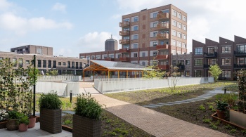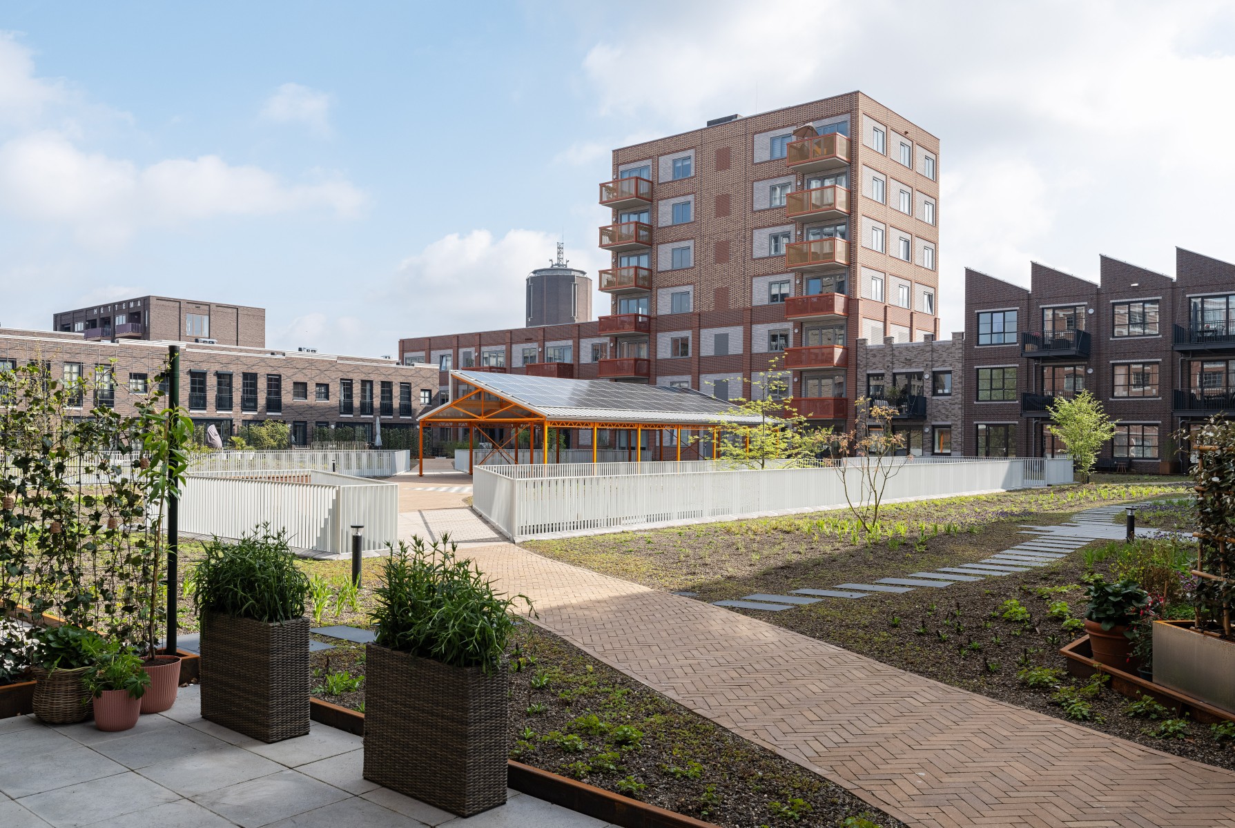 Oranjekade telt 269 woningen, variërend van compacte appartementen van 40 m2 tot royale woningen van 200 m². Dit zorgt voor een gevarieerd publiek en versterkt het gemeenschapsgevoel. Joost: “We wilden echt een buurt creëren waar mensen samenleven.” Een opvallend detail zijn de centrale binnengebieden, daktuinen waaronder zich de parkeervoorziening bevindt. Een van deze daktuinen heeft een overkapping van hergebruikte vakwerkspanten uit het monumentale pand. “Bewoners kunnen hier activiteiten organiseren en elkaar ontmoeten, wat bijdraagt aan een levendige gemeenschap.”