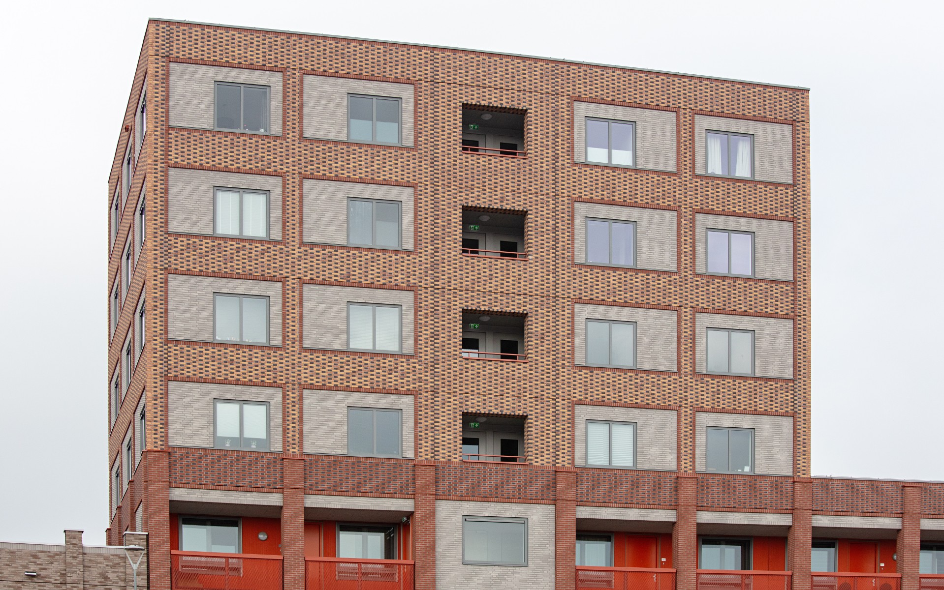 Architect Joost Verbeek van het Eindhovense bureau architecten|en|en, kijkt met voldoening terug op het grootschalige project Oranjekade in Helmond. Wat ooit een min of meer verwaarloosd gebied was met dichtgetimmerde bedrijfspanden, is getransformeerd tot een levendige woonwijk met een duidelijke identiteit. De combinatie van moderne architectuur met historische elementen geeft Oranjekade een unieke uitstraling met speciale aandacht voor prefabbouw. En voor de rol van aluminium detaillering hierin, die hier en daar opvallend kleurrijk is.
