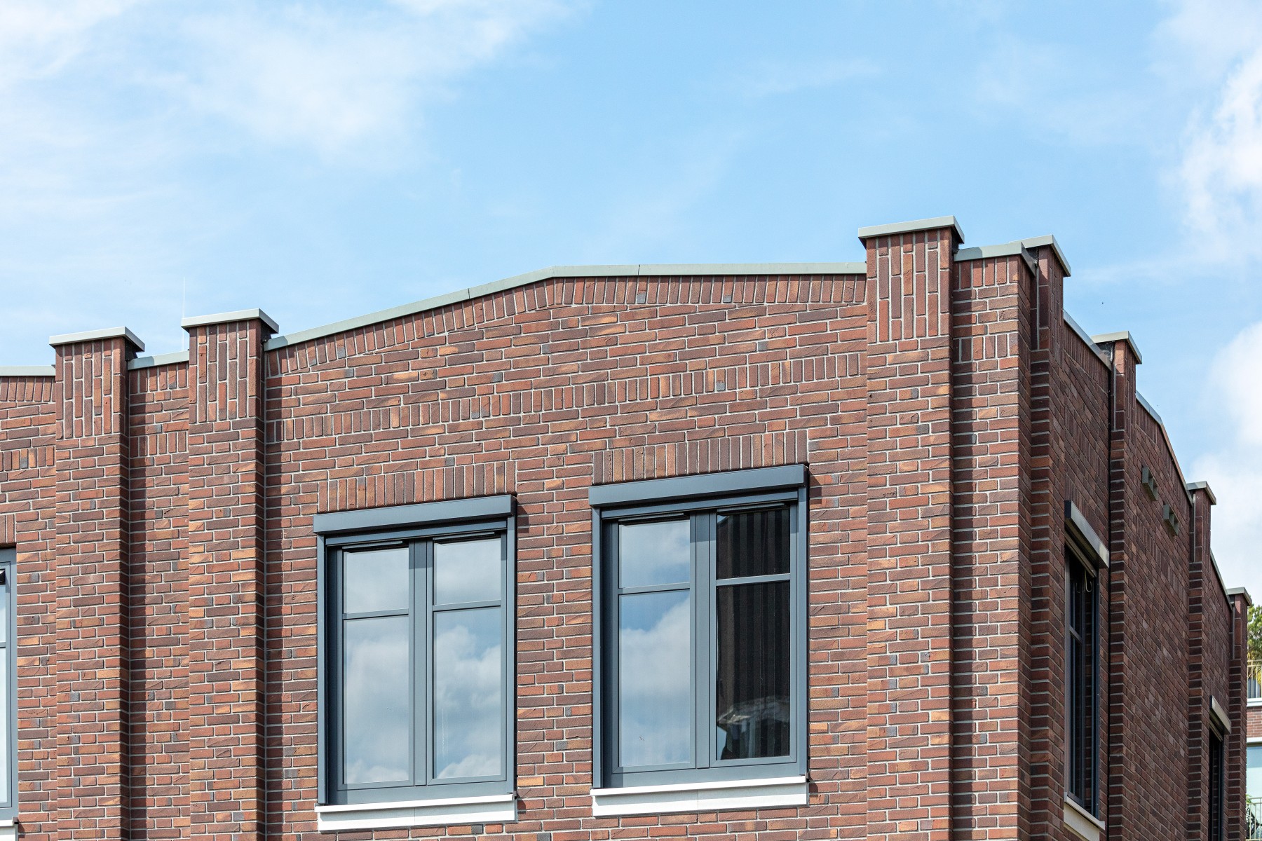 Aluminium is cruciaal binnen deze aanpak, vanwege het lage gewicht en de mogelijkheid om dit materiaal naadloos te combineren met prefab bouwsystemen. “Juist door het lage gewicht van aluminium konden we gedetailleerde toepassingen realiseren die perfect aansluiten op prefab panelen”, legt Joost uit. Specifiek noemt hij aluminium dakranden, waterslagen, muurafdekkappen en maatwerkoplossingen. “We hebben ook gekozen voor aluminium kozijnen en deuren, omdat ze duurzaam en zeer onderhoudsvriendelijk zijn.”